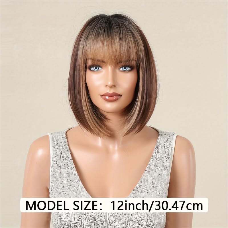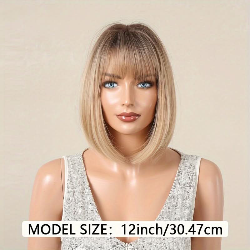 Step out in style with our elegant 12-inch bob wig featuring bangs, crafted from high-temperature fiber for a stunning curly wave look. With a breathable rose net cap and lightweight design, this summer wig is available in multiple colors, making it the perfect accessory for any occasion!