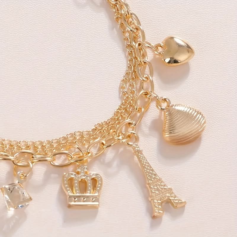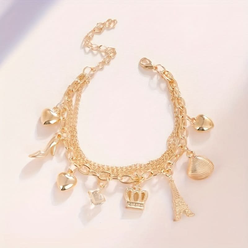 This Elegant Tassel Pendant Bracelet brings a sophisticated touch to any outfit. Made with golden-plated alloy, this bracelet features a stunning crown heart pendant and delicate tassels that add movement and style to your wrist. Its adjustable chain ensures a perfect fit for all wrist sizes, making it a versatile and comfortable accessory for daily wear. Whether you're going for a boho chic look or dressing up for a night out, this bracelet complements any style effortlessly. Perfect for casual occasions, date nights, or as a thoughtful gift, its timeless design adds a touch of elegance to every outfit. Make a statement with this stylish and durable bracelet, designed to elevate your accessory game.