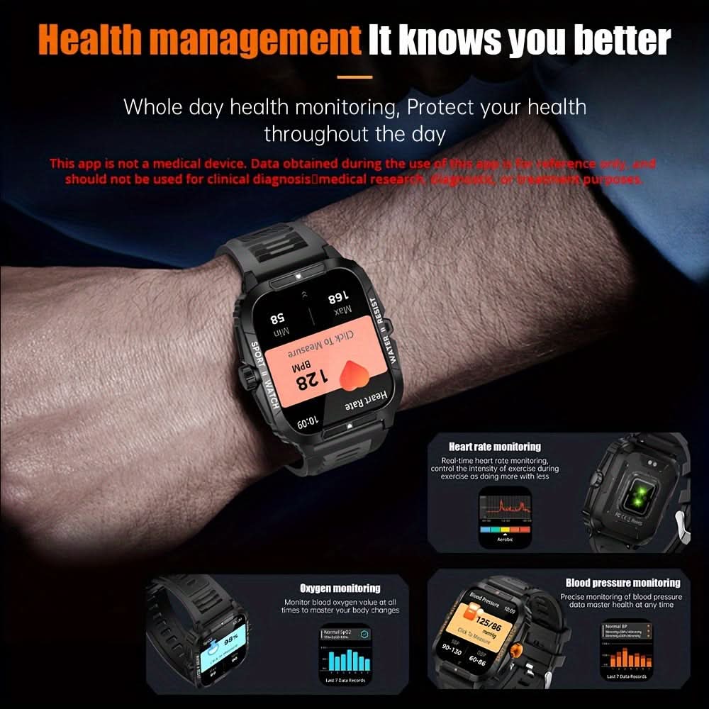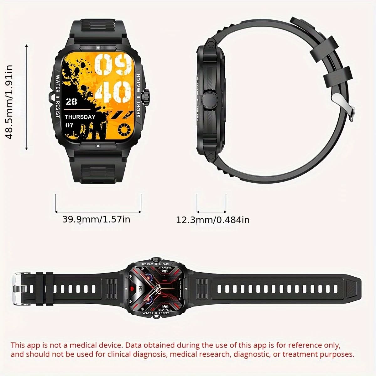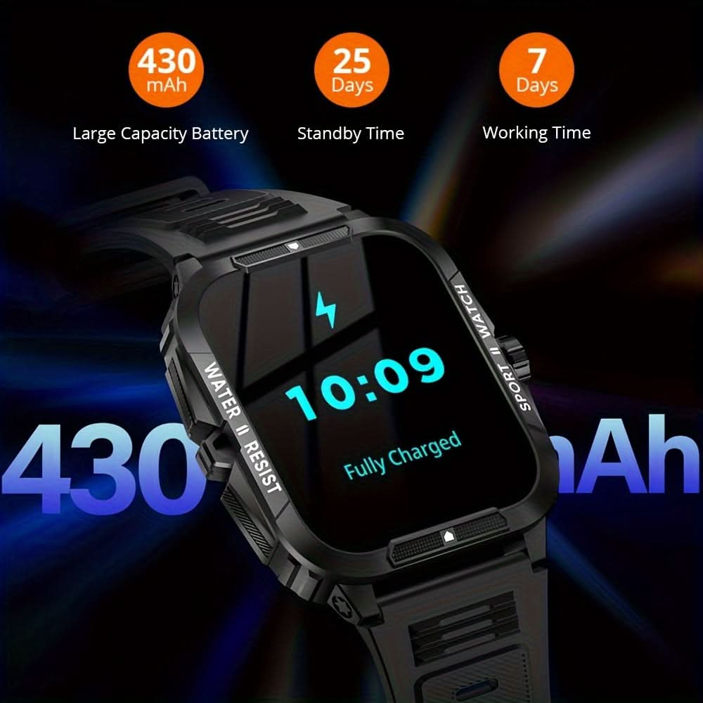 Featuring a 1.96" HD screen, this smartwatch offers voice calling, a 430mAh long-lasting battery, and over 100 sport modes. With 3ATM water resistance, an AI voice assistant, calorie tracking, weather forecasting, and a pedometer, it's fully compatible with Android phones.