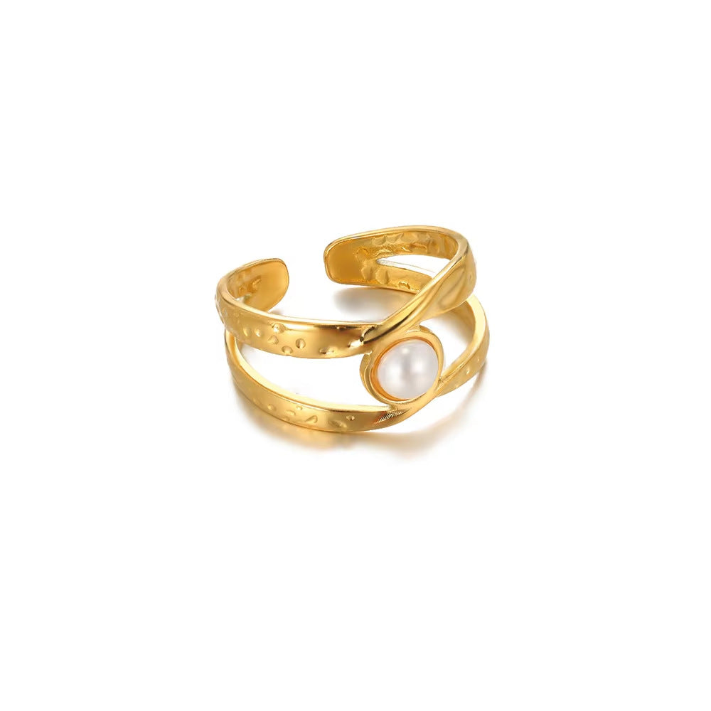 Modern Stainless Steel Pearl Ring – Adjustable Geometric Design, Minimalist Jewelry