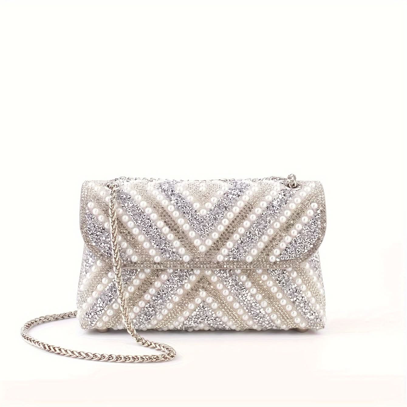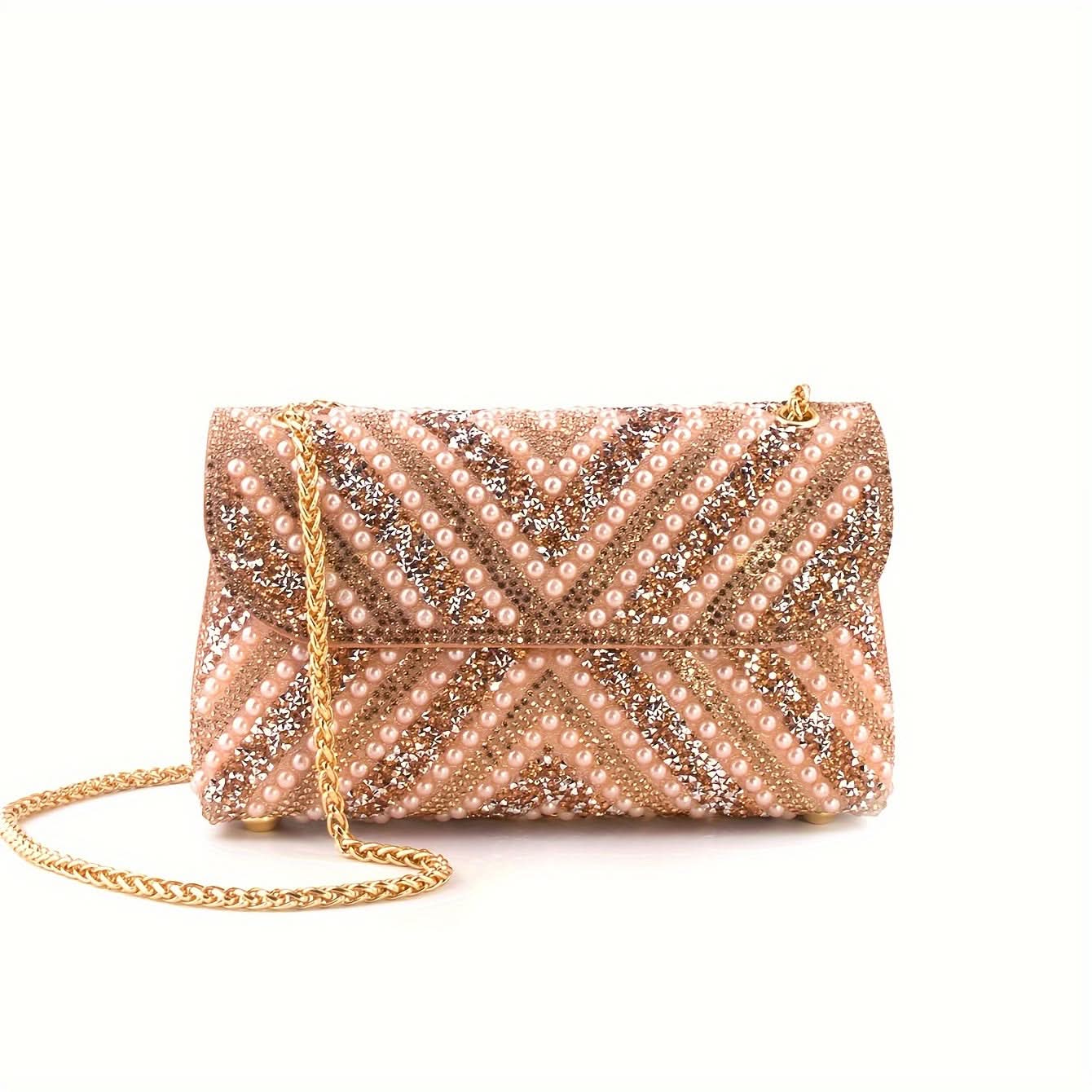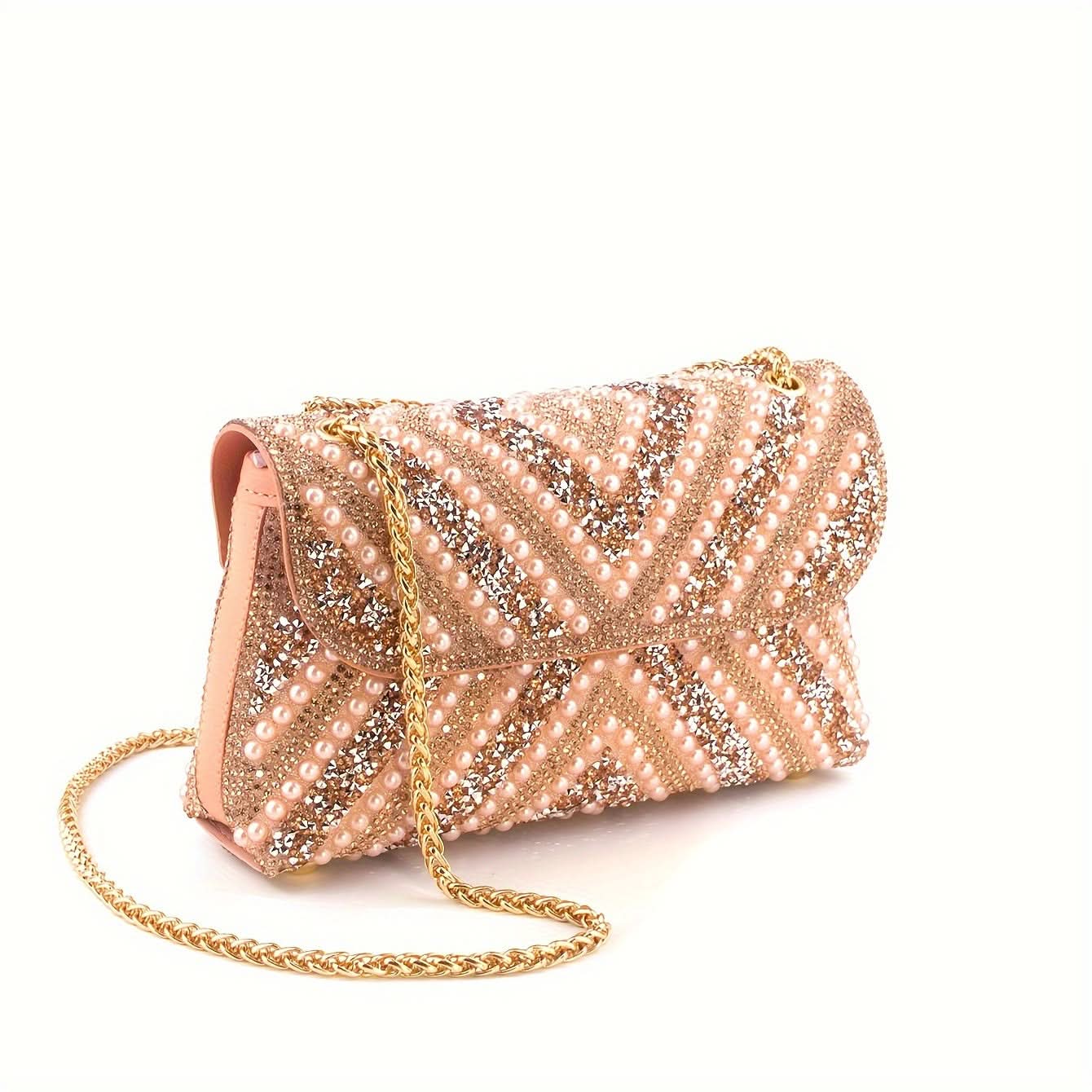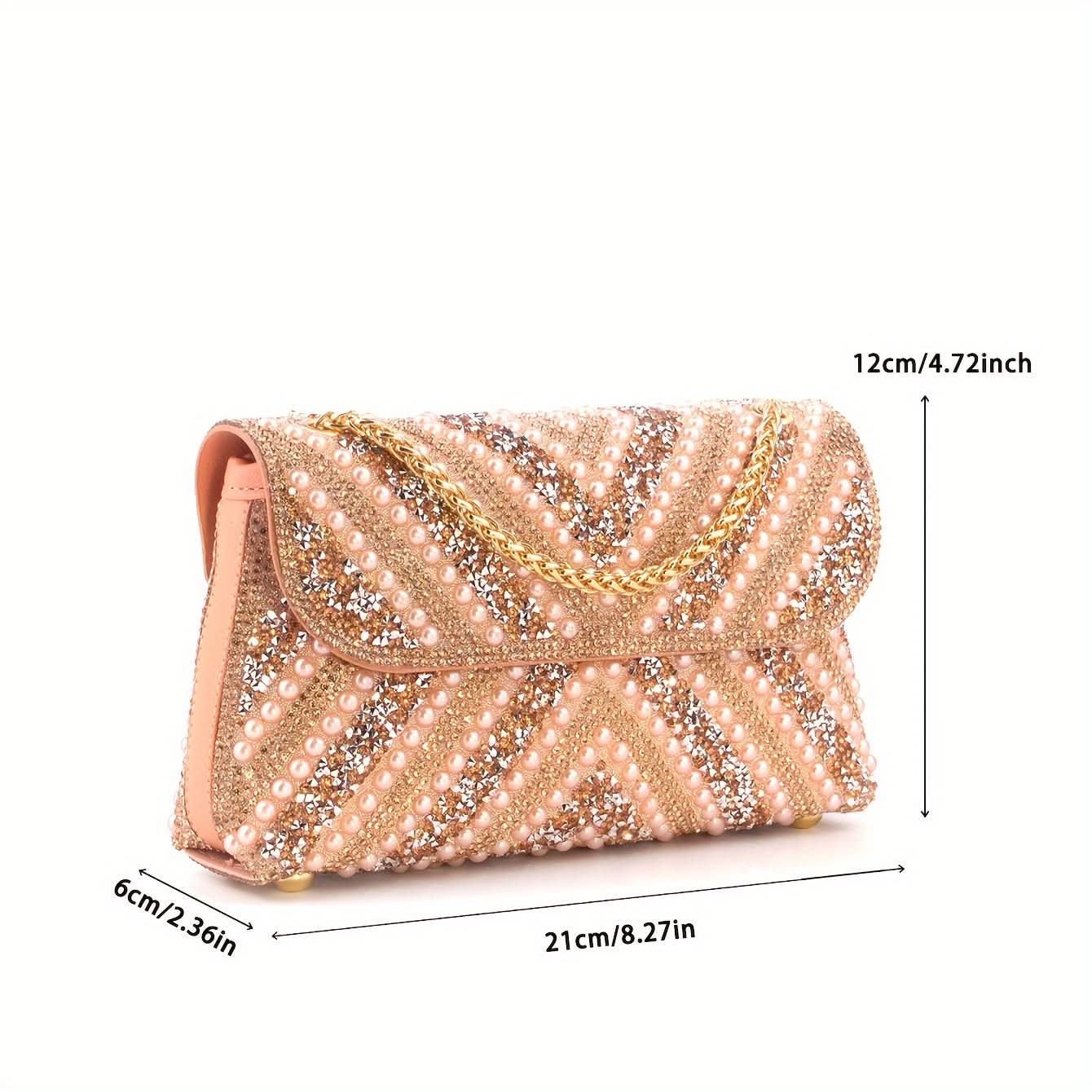Shine bright at any special occasion with this stunning pink rhinestone and pearl clutch. Crafted from high-quality polyester, this elegant evening bag is adorned with sparkling rhinestones and delicate pearls, adding a glamorous touch to any outfit. The adjustable chain strap provides versatile carrying options, allowing you to wear it as a shoulder bag or carry it as a chic clutch. With a secure buckle closure, your essentials will stay safe, while the soft polyester lining offers a smooth interior for your phone, makeup, and other small items. Perfect for weddings, proms, or evening events, this pink clutch is designed to turn heads and elevate your look with its timeless beauty and sophisticated sparkle.