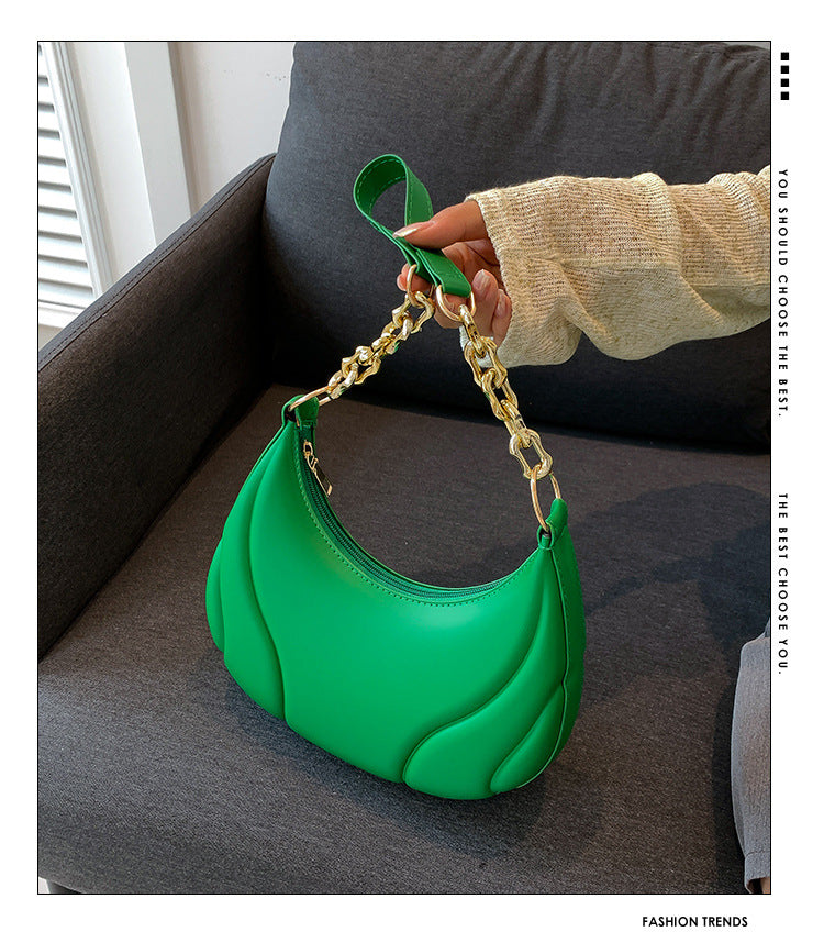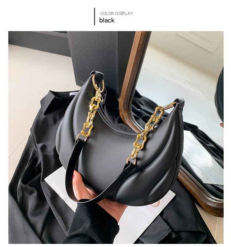 Add a chic twist to your everyday look with this pressed shell armpit bag, designed for the modern woman who values effortless style. With a sleek pillow silhouette, trendy chain detail, and smooth PU texture, this small shoulder bag is the perfect blend of structure and softness. The zipper closure keeps your essentials secure, while the sandwich zipper bag and interior patch pocket offer thoughtful organization.