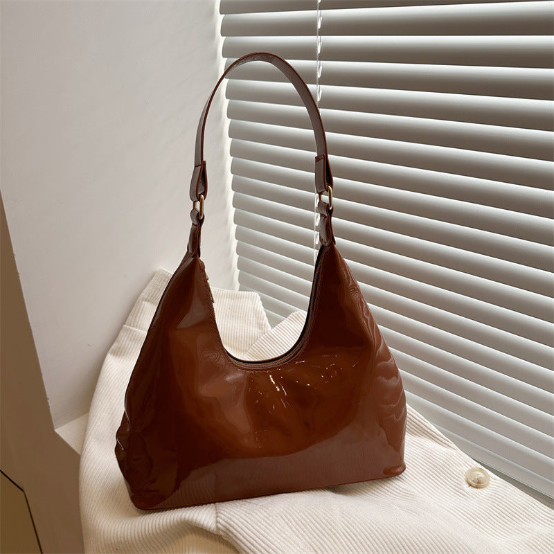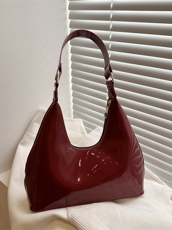 Step into timeless elegance with this 2025 retro shoulder bag, designed for women who appreciate a touch of vintage charm. Crafted from glossy wine red PU patent leather, this dumpling-shaped underarm bag features a soft structure and smooth zipper closure for easy access. The rich texture and French-inspired design make it a standout accessory for both casual and dressed-up looks.