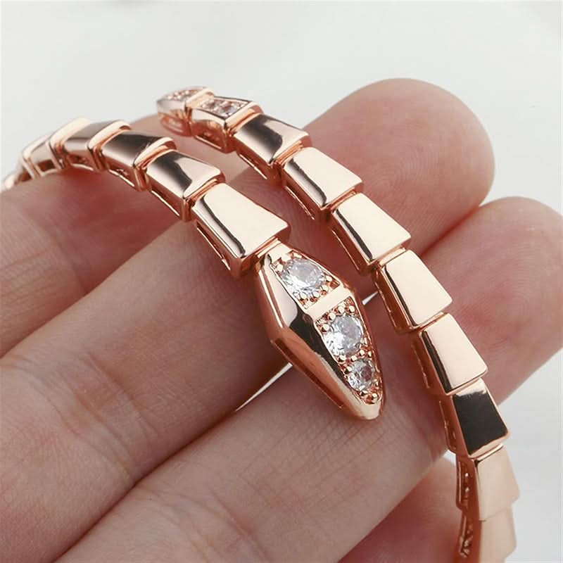 Add a touch of luxury to your jewelry collection with this stunning snake cuff bracelet. Crafted from durable copper and designed in a sleek, light luxury style, this bracelet features full diamond accents that sparkle with every movement. The open, flexible design ensures a comfortable fit, while the non-fading plating keeps it looking as beautiful as the day you bought it. The unique snake-inspired design adds a bold yet elegant flair to any outfit, making it a perfect accessory for both casual and formal occasions. Whether you're treating yourself or looking for a special gift, this bracelet is sure to make a lasting impression with its timeless style and high-end appeal.