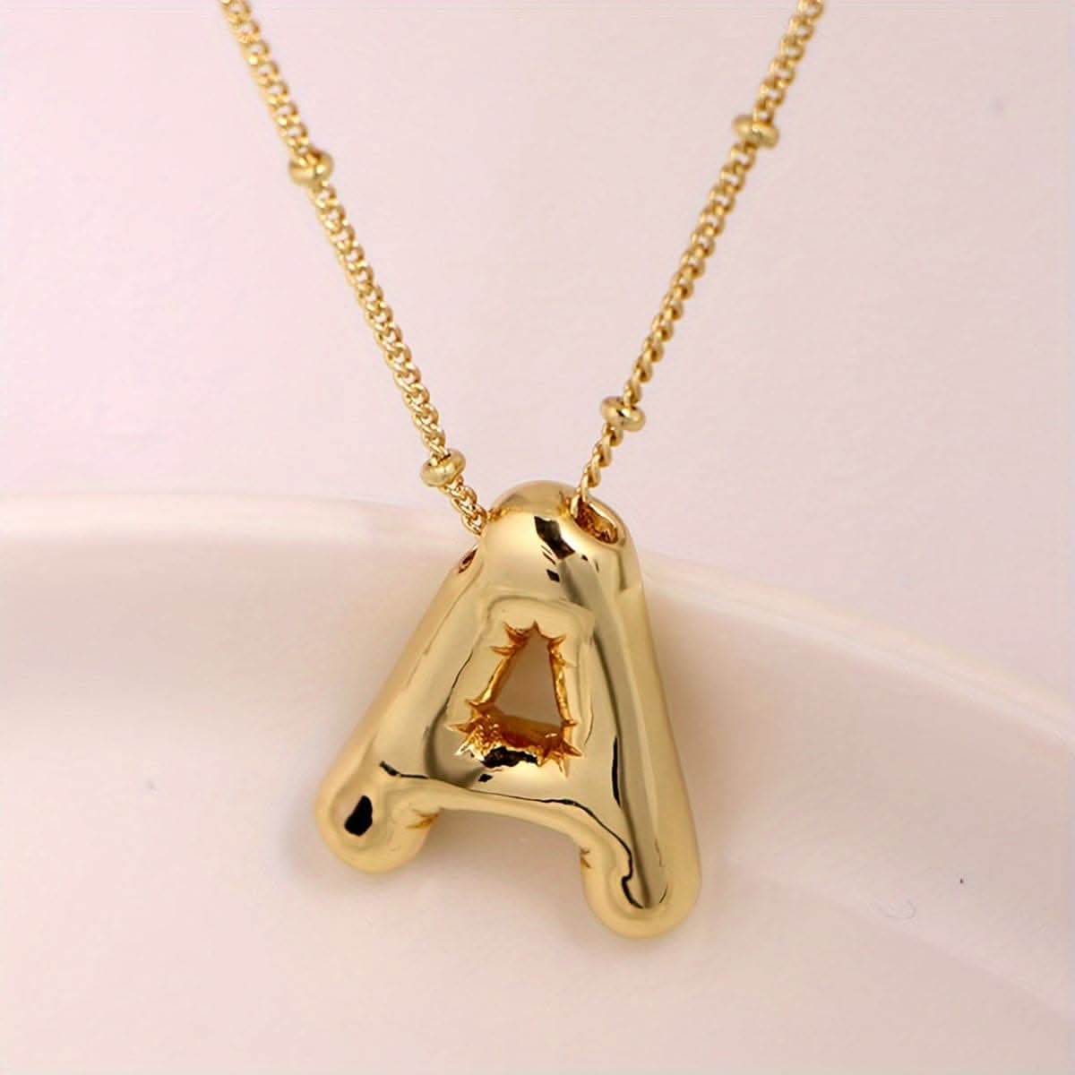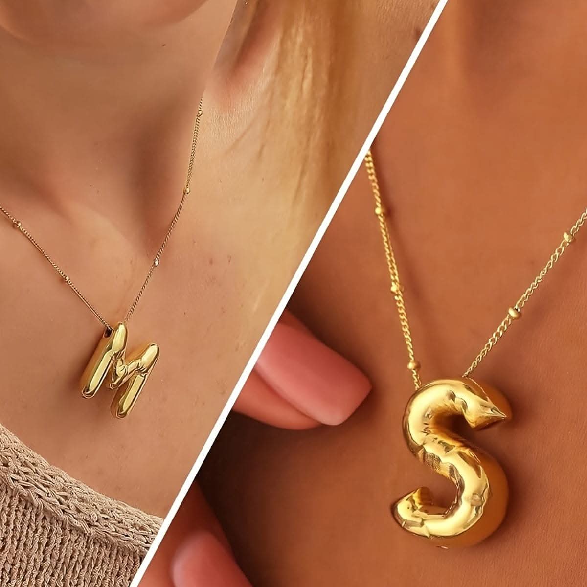 This bold pendant necklace features a chunky balloon bubble initial letter in stainless steel and copper. A stylish piece of jewelry for women, perfect for personalizing your look with a touch of fun.