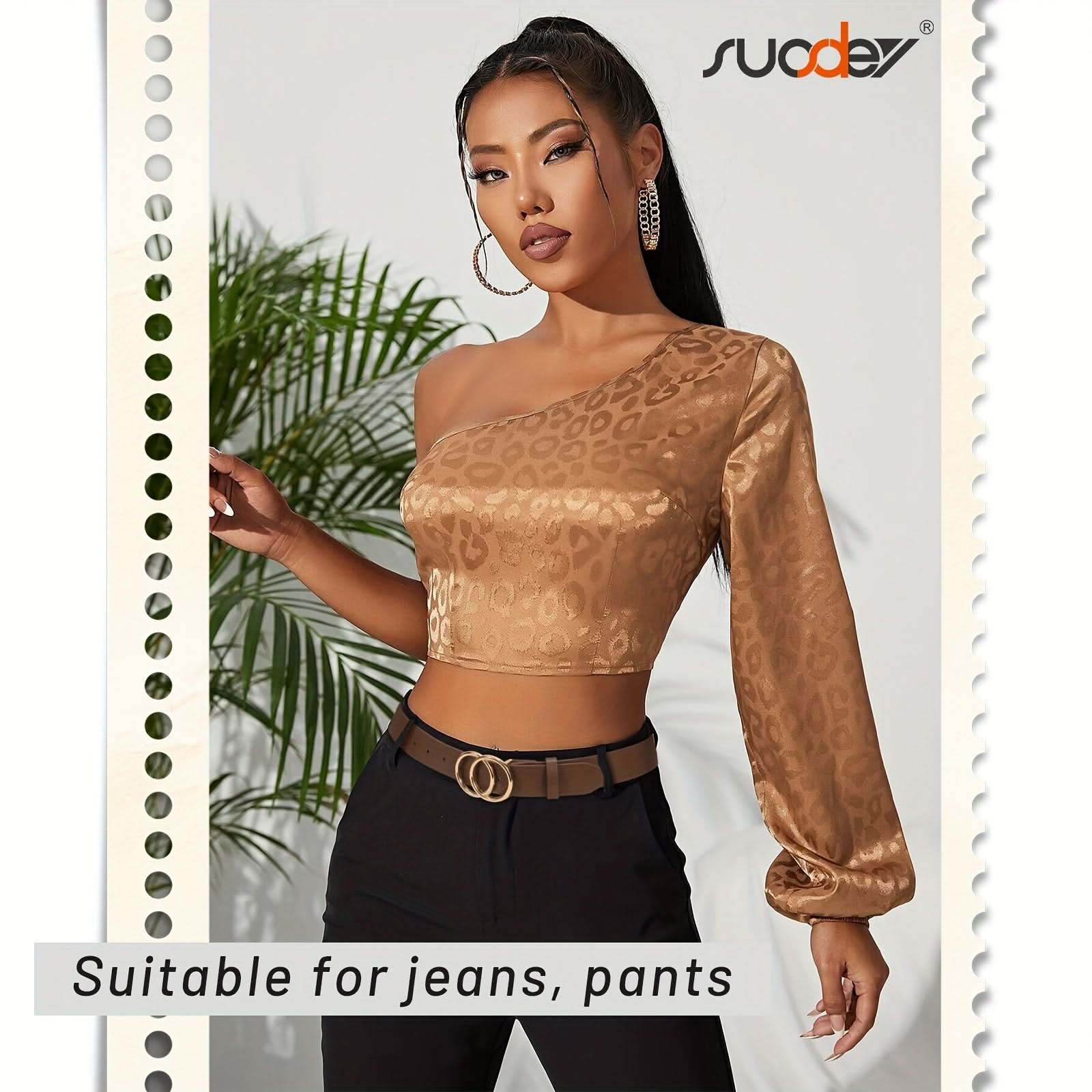 Elevate your style with the SUOSDEY Double O-Ring Waist Belt, a chic accessory designed to enhance any outfit. Made from high-quality PU leather, this soft faux leather belt features a bold double O-ring buckle, offering a modern yet timeless look. Perfect for pairing with jeans, dresses, or skirts, this versatile belt is an ideal choice for street style and mature casual wear. Its sleek design and subtle sequins add just the right amount of sparkle, making it a statement piece for any occasion. The belt fits comfortably around the waist, giving you a flattering silhouette with ease. Whether you're dressing up for a night out or adding a touch of style to your everyday outfits, this belt is the perfect finishing touch.