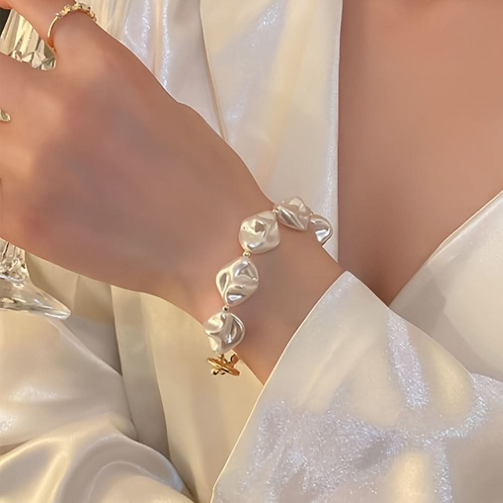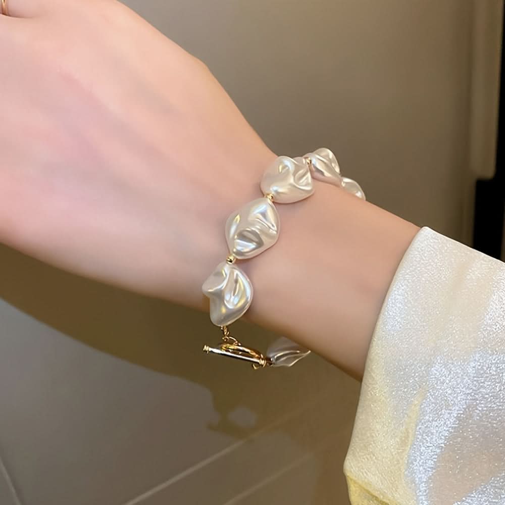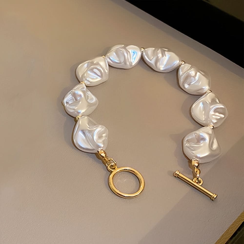Embrace elegance with this Vintage Baroque Pearl Link Bracelet, designed to add a touch of classic charm to any outfit. Featuring uniquely shaped imitation pearls, this bracelet captures the beauty of baroque style with a modern twist, creating a statement piece perfect for daily wear or special occasions. Each irregular pearl is linked together, giving the bracelet a distinctive, high-end look that pairs beautifully with both casual and formal attire. Lightweight and comfortable, it’s ideal for all-day wear and versatile enough to suit any season. This timeless accessory makes a thoughtful gift, perfect for holidays or as an everyday luxury. Elevate your jewelry collection with this unique piece that effortlessly blends vintage sophistication with contemporary style.