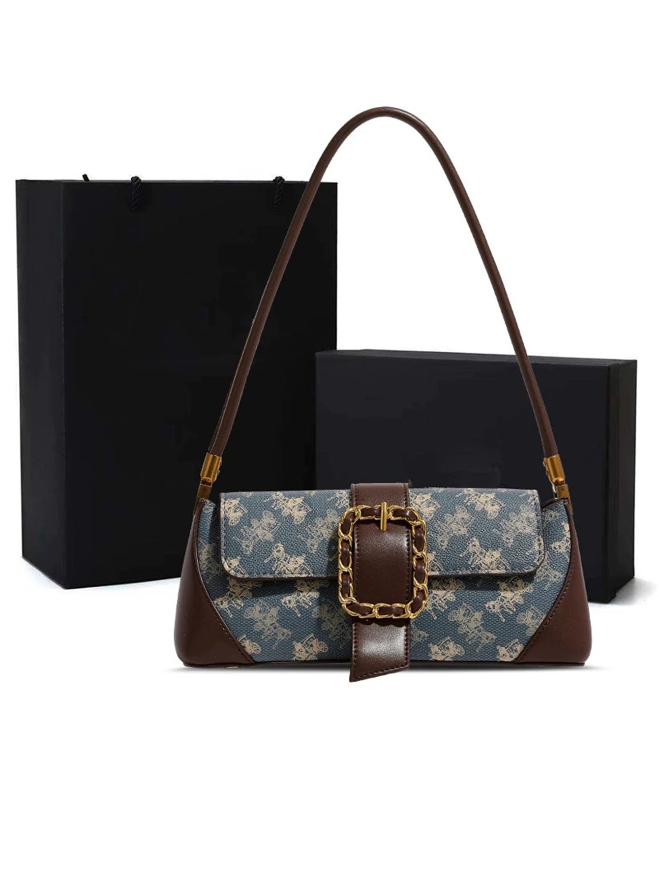 Make a bold fashion statement with this vintage shoulder bag, designed with a stylish horse and carriage pattern and elegant colorblock stitching. Crafted from durable PU and lined with soft polyester, this medium-sized handbag combines classic European-American retro vibes with modern utility. The zippered opening secures your essentials, while the single strap allows for easy wear as an underarm or shoulder bag.