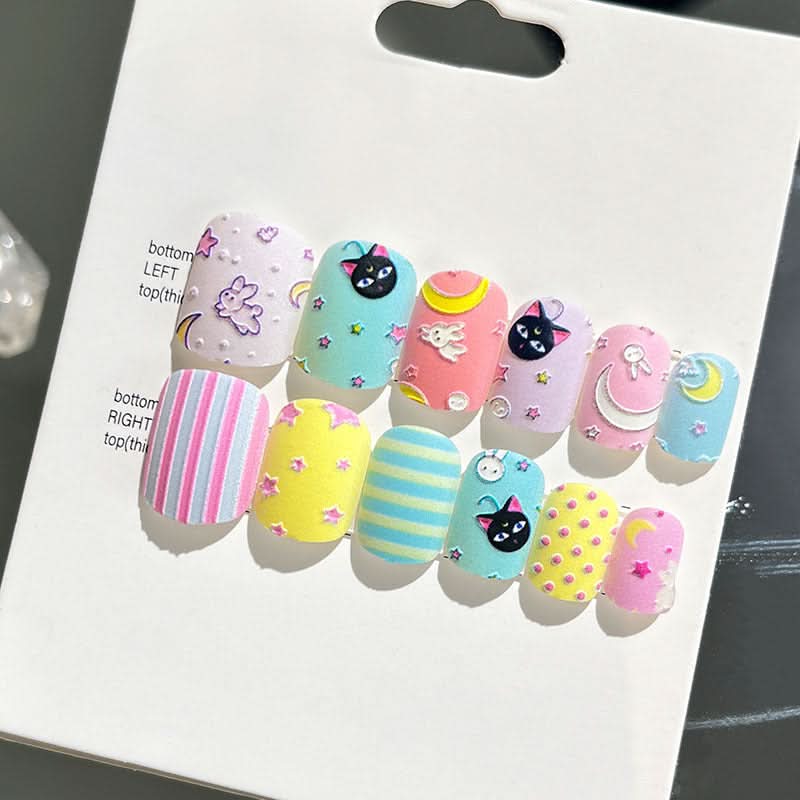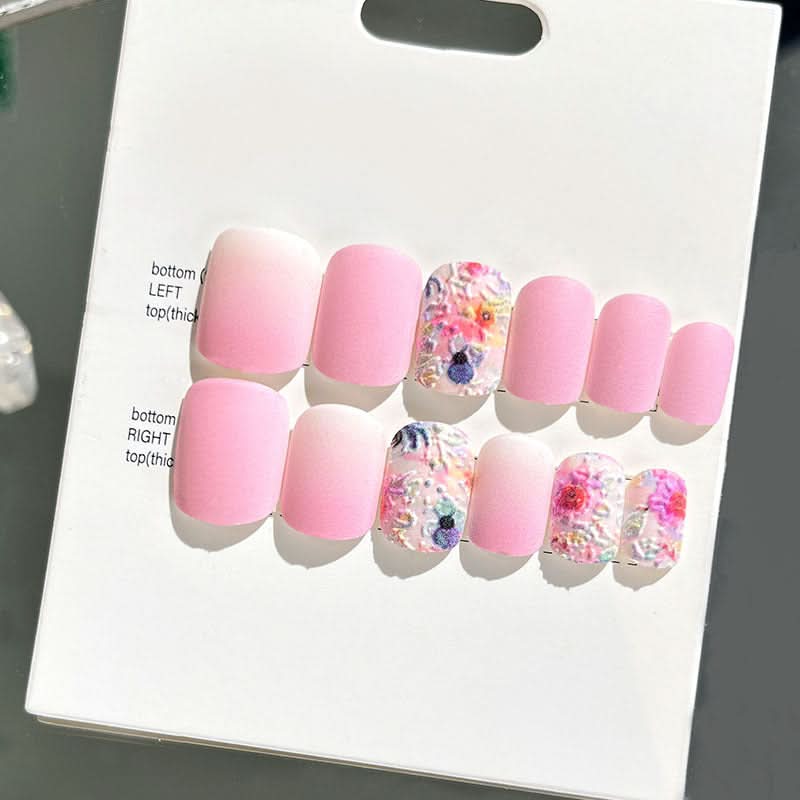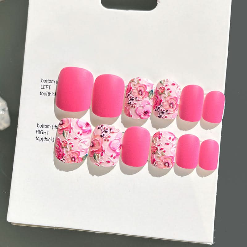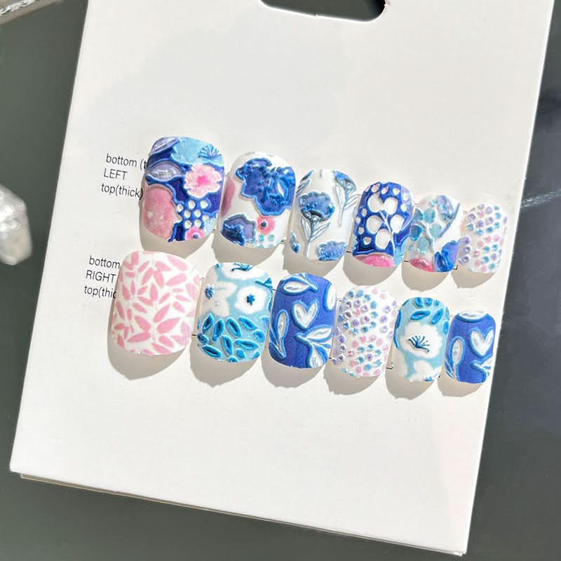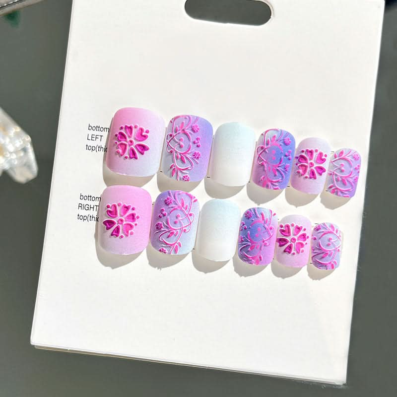 Add a touch of elegance with these wearable embossed false nails, designed for a short, sophisticated look. Ideal for brides or special occasions, these new 3D nail stickers offer a beautifully detailed, finished touch.
