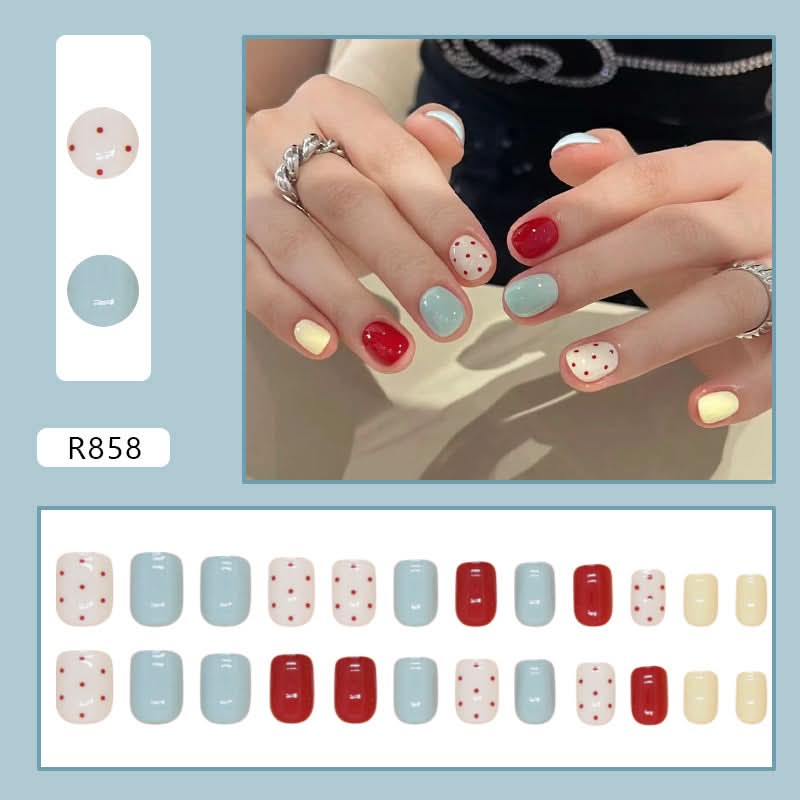 Add a playful touch to your look with these cute polka dot detachable short square nail pieces. Featuring retro nail art patches, this 24-piece set offers a fun and stylish upgrade for your nails.