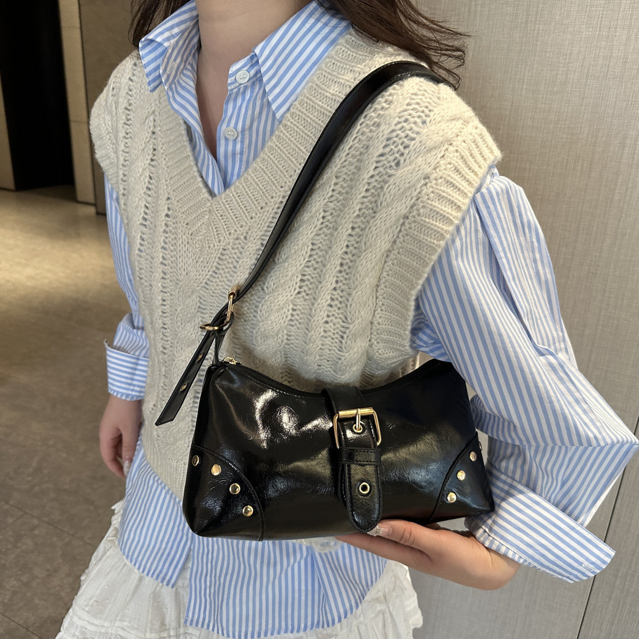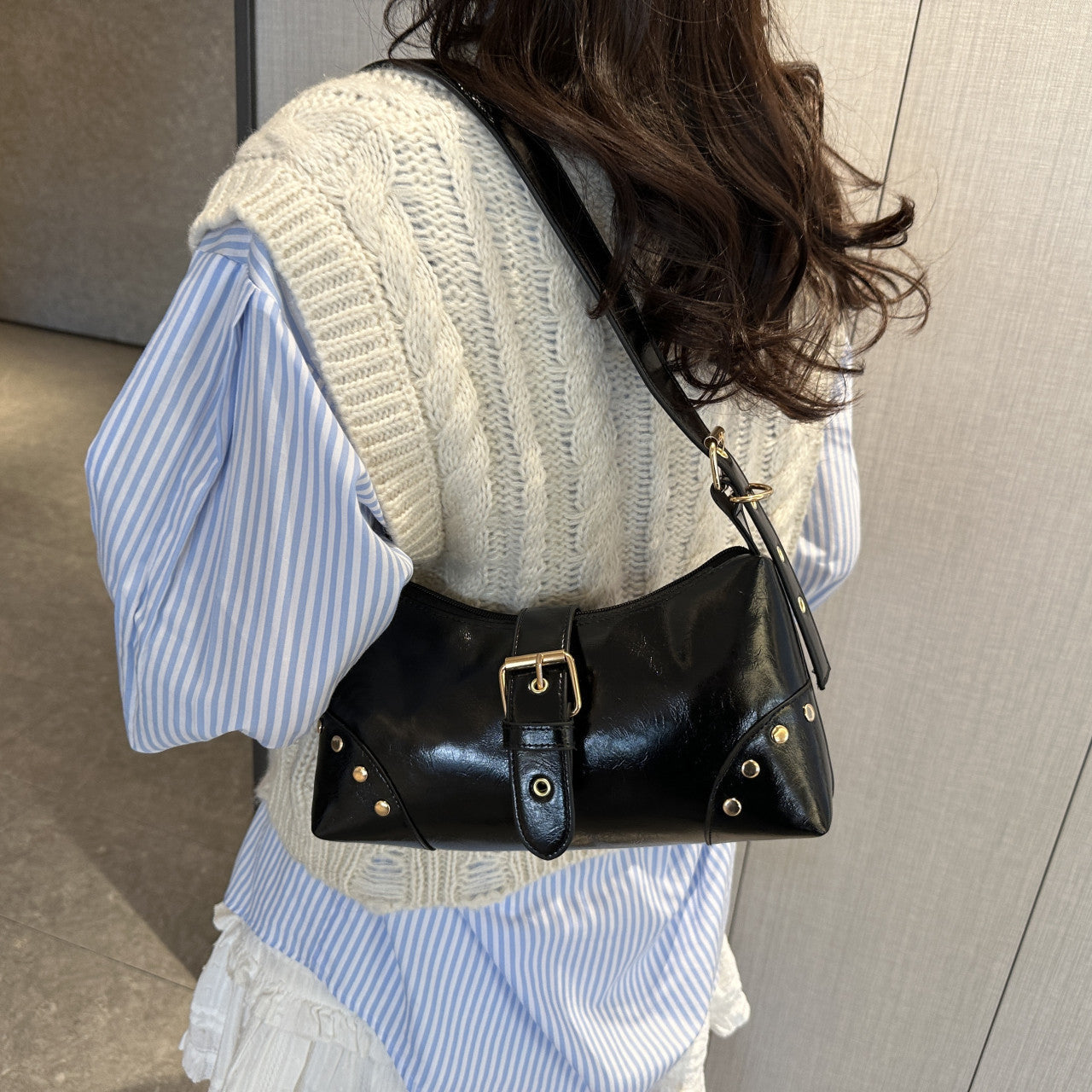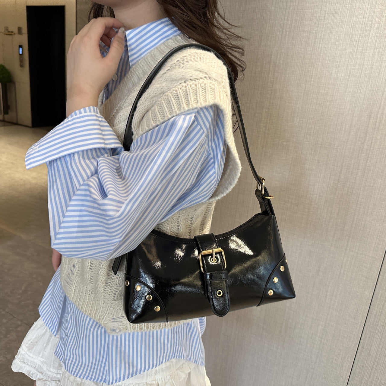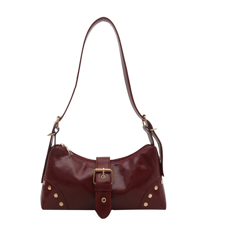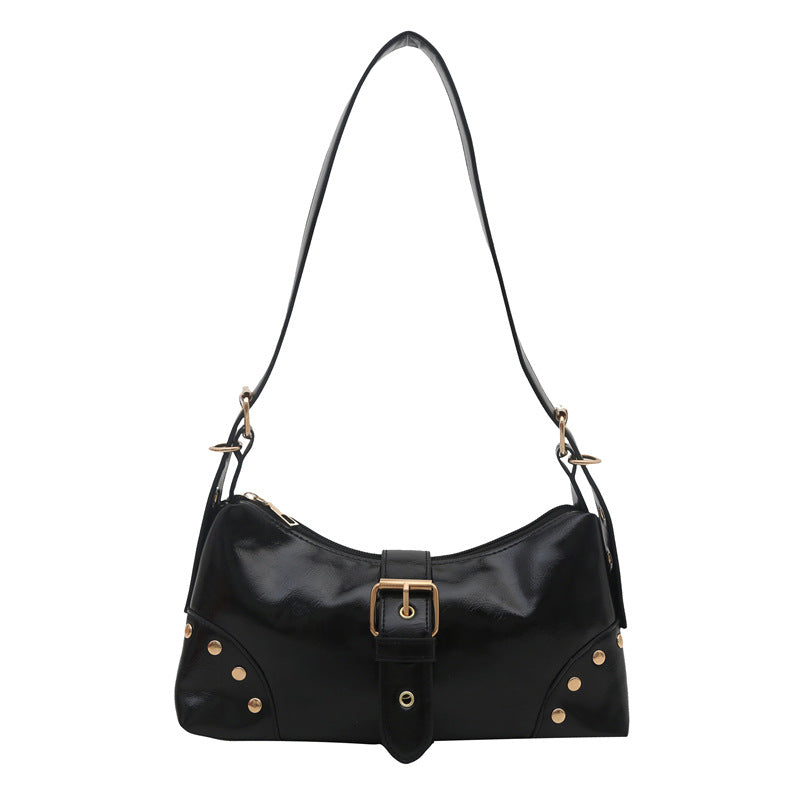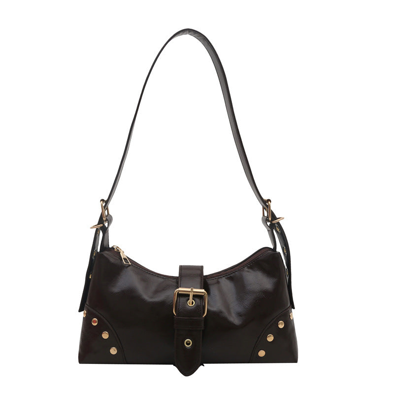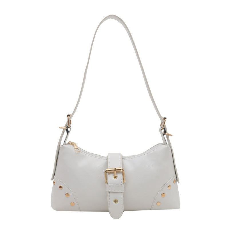 Add a bold edge to your everyday style with this retro-inspired rivet shoulder bag. Made from durable PU leather and lined with soft polyester, this medium-sized underarm bag offers a sleek horizontal square shape with a secure zipper buckle closure. Its standout rivet detailing and neutral color options—black, white, brown, and red—make it the perfect accessory to match your street fashion wardrobe. Whether you're heading out for errands or a casual meetup, the single-strap design provides comfort and functionality. Handpicked from Abroad, this crossbody bag blends practicality with statement-making flair, offering a high-end look without the fuss. Ideal for those who love timeless style with a modern twist.