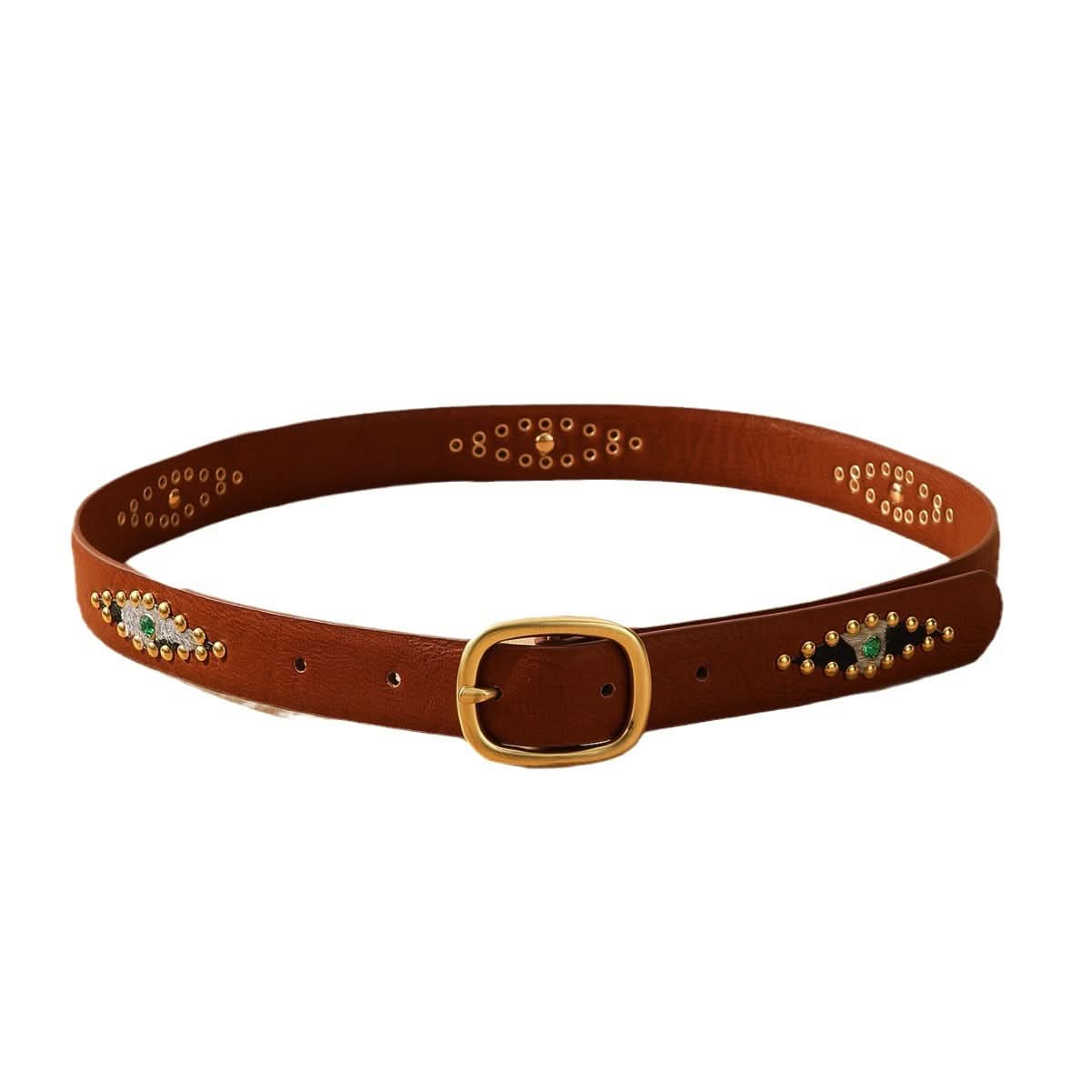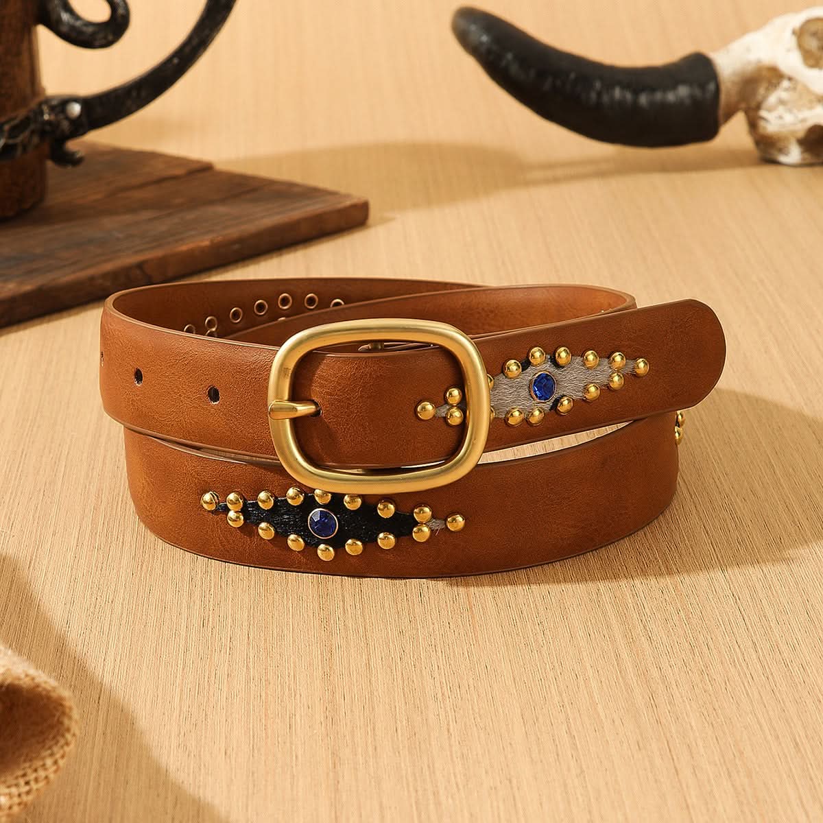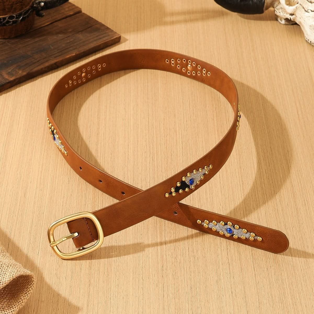 Add a touch of vintage charm to your wardrobe with this Women's Retro Western Leather Belt. Crafted from durable imitation leather, this belt features intricate bead inlays and stylish rivet accents, exuding a unique blend of western and literary-inspired elegance. The classic pin buckle, made of sturdy alloy, ensures a secure and adjustable fit, while the 2.7 cm width and multiple length options (92 cm, 102 cm, 112 cm) provide versatility for various outfits.